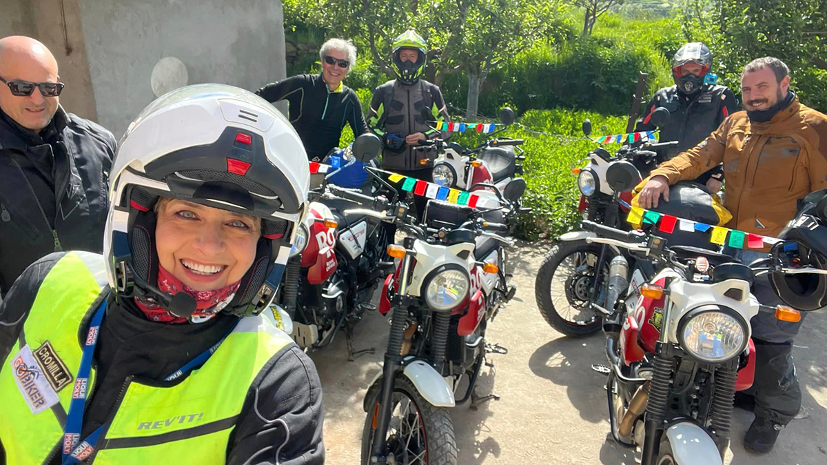 Arriviamo alle moto e troviamo le bandierine tibetane legate sul manubrio. Un altro gesto gentile di Tashi. Mi spiega che sono di 5 colori (blu, bianco, rosso, verde e giallo) come i 5 elementi (Cielo, Aria, Fuoco, Acqua e Terra). Sopra sono stampate le parole sacre "Om Mani Padme Hum" e il vento che le farà muovere spargerà la preghiera portando pace e tranquillità.