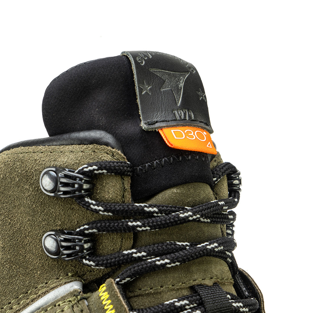 | SUOLA | mescola di gomma “Traction”, grip antiscivolo con canali di drenaggio per eliminare fango e acqua |
