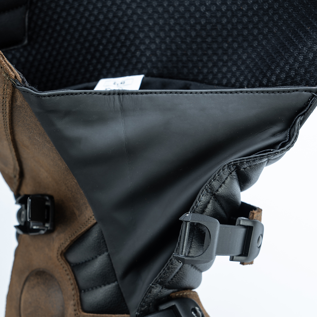 malleoli in PU su entrambi i lati con imbottiture interno tomaia anatomiche anti-shock. Paratibia frontale in PU con presa d’aria in rete metallica |